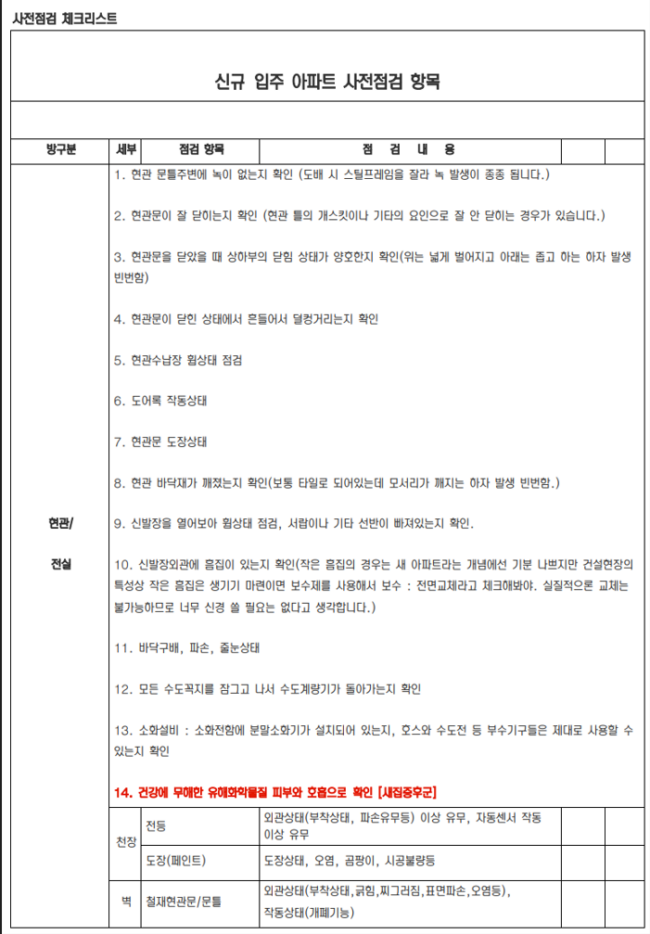 신축 아파트의 사전점검 대행, 중요한 건 중대하자