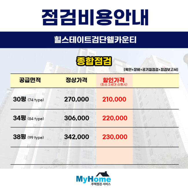 안녕하세요 마이홈주택점검서비스입니다 오늘은 많은 문의주시는 힐스테이트검단웰카운티 사전점검 대행 업체와 비용에 대해 말씀드리겠습니다 현재 입주 카페나 단체 대화방에 간단한 홍보 글 작성부터 같이 점검할 세대를 모집해 주신 입주민분께는 최대 비용 무료의 혜택으로 보답해 드리고 있으니 좋은 기회 되시길 바랍니다 입주 전 내 집 방문 행사를 앞두고 사전점검을…