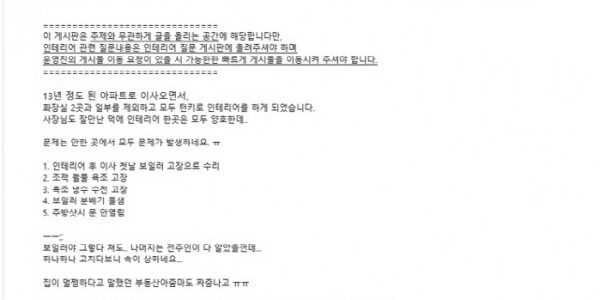 하지만 위의 경우에서 중대하자에 해당하는 부분은 하나도없기에 사실상 수백만원에 달하는 수리비는 현재 살고 계신분께서 부담하실수 밖에 없습니다