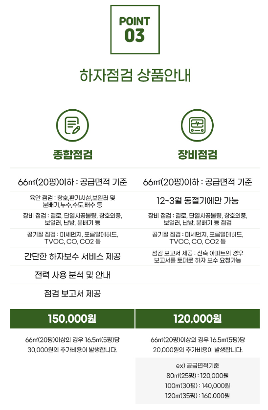 결로,곰팡이,누수….등등의 중대하자의 경우 열화상카메라와 장비를 통해서만 정확한 확인을 할 수 있고 그 외에도 전기,소방,설비,창호,환기장치…등등 전문가의 점검이 필요한 부분들이 있습니다