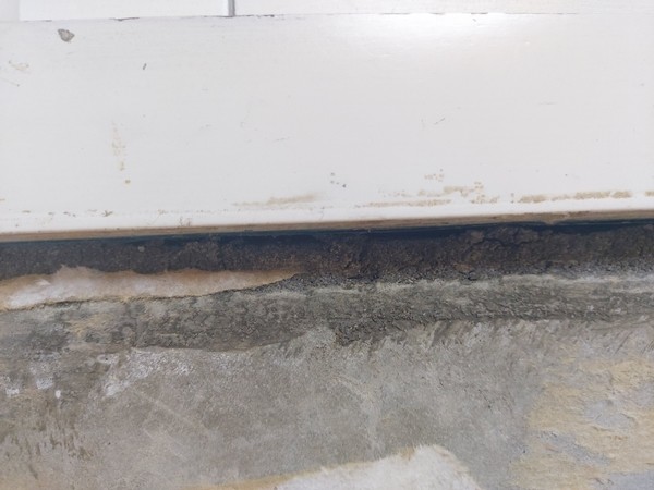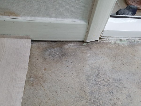 사진상의 걸레받이부분이 매립배관의 손상으로 인해 미세누수가 발생하는 부분입니다