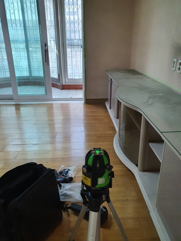 특히 중문과 창호의 경우 수직, 수평이 반듯하지못하면 공사자체가 어렵고 힘든 경우가 있어 장비를 통해 점검을 해드리고 있습니다
