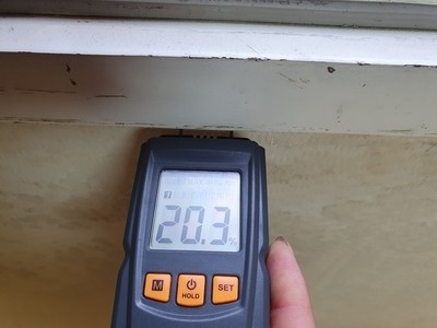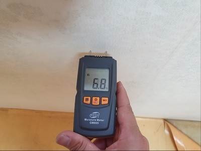 수분측정계로 측정시 일반 내벽에 비해 창틀의 틈새로 누수가 발생된 외벽의 경우 높은 수분함유량이 나타납니다