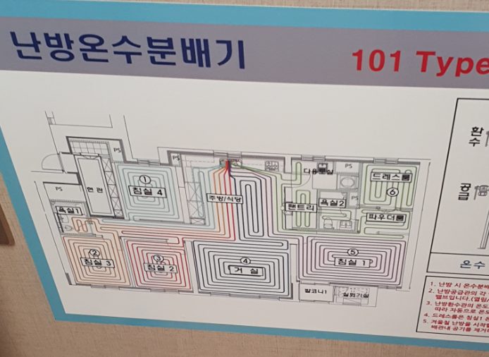 위의 사진은 지난주 사전점검을 진행한 신축아파트의 바닥 난방배관도면입니다