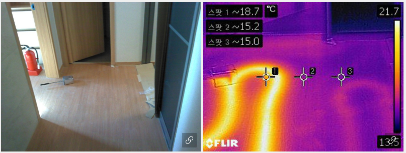 마지막으로 발코니 확장공사를 포함한 인테리어공사를 하신후에 요청하신 하자점검을 통해 바닥난방의불량을 발견한 사례입니다