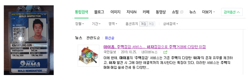 특히 곰팡이와 관련된 점검은 대한 곰팡이협회의 자격을 취득한 전문 검사관이 직접 진행함으로 보다 완벽한 점검이 이루어지고 있습니다