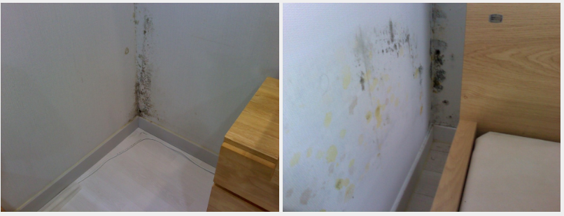 위 사진의 경우 곰팡이는 단열불량의 원인과 더불어 밀착된 가구로 인해 난방열이 전달안되고 공기의 순환이 이루어지지못해 발생되었던 것으로 단순히 가구의 이동으로 더 이상 곰팡이는 발생하지 않았습니다