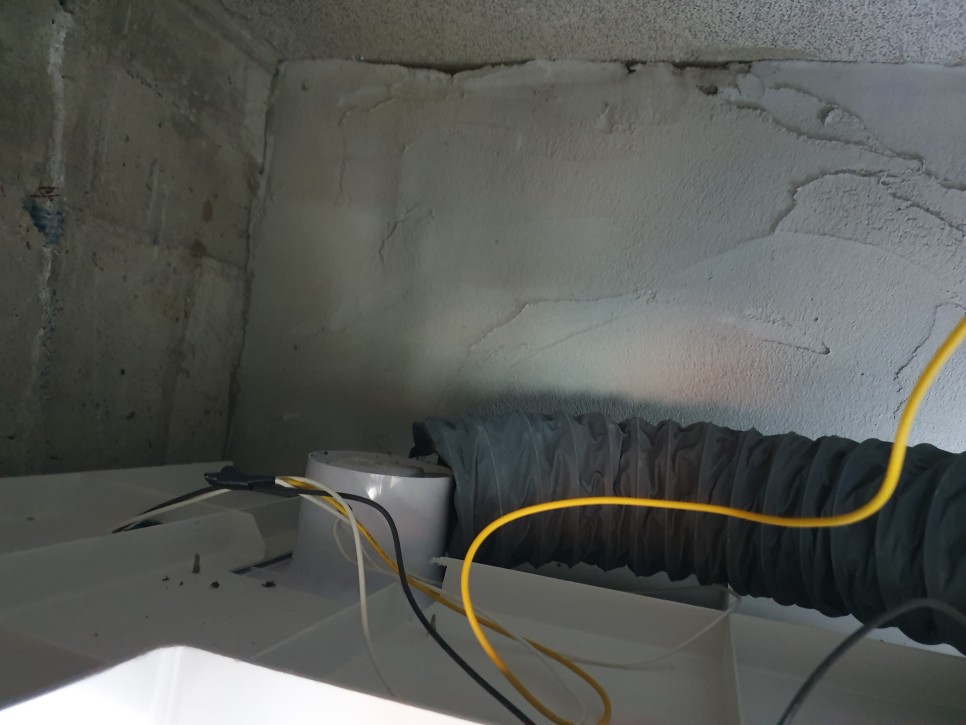 욕실 환기장치의 후렉시블 배관이 빠져있습니다