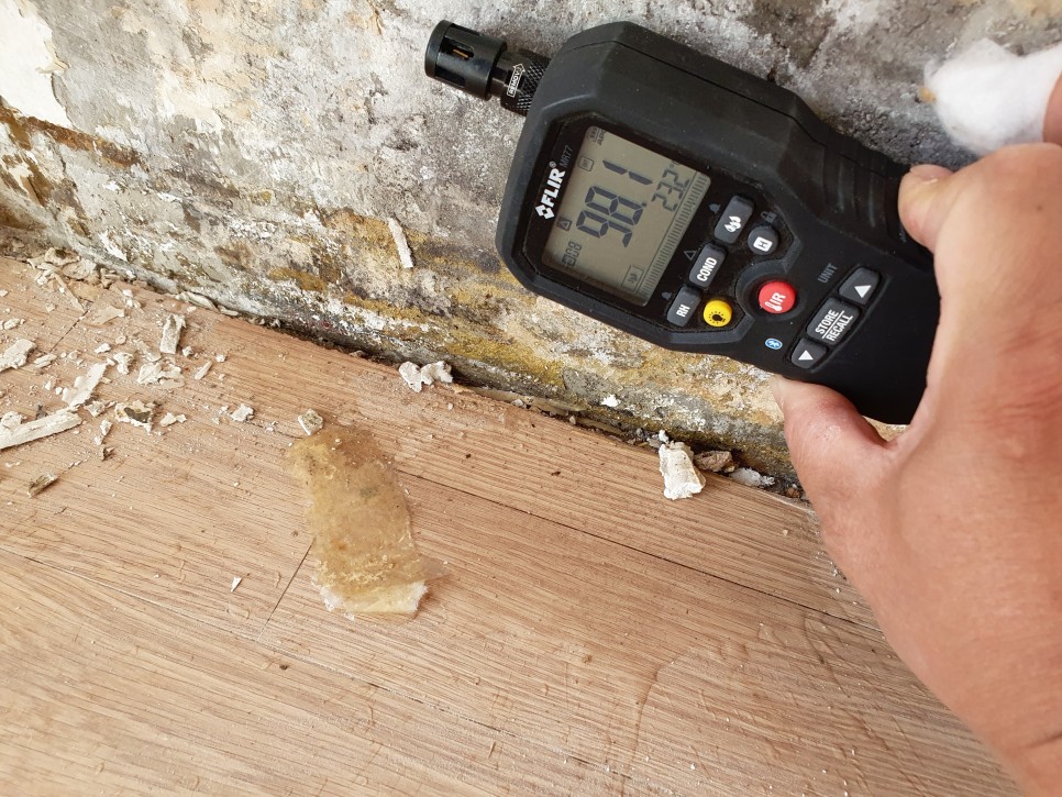 미세 누수로 인해 내부의 석고보드는 약간의 수분이 측정됩니다