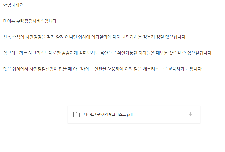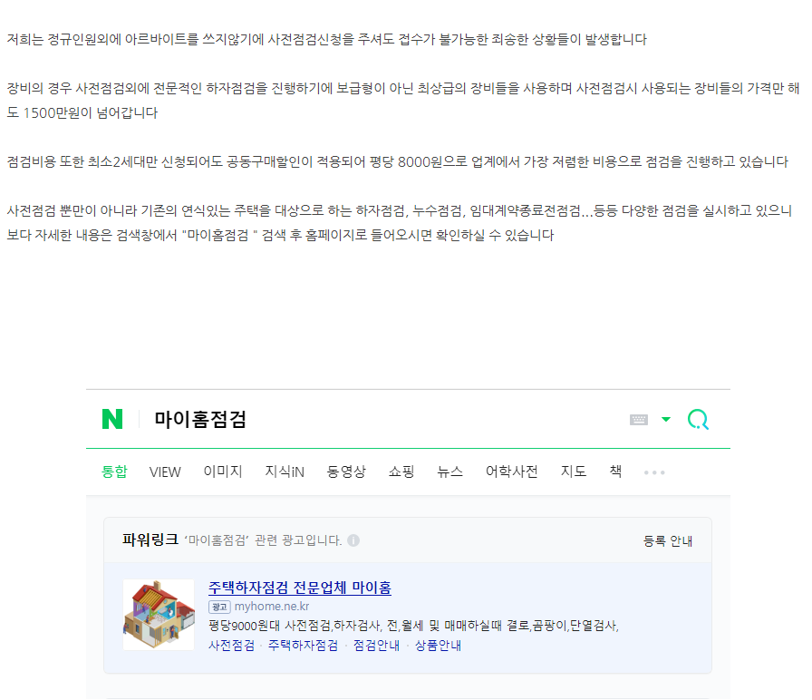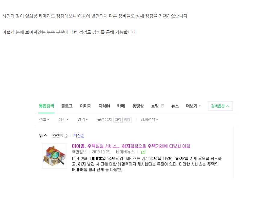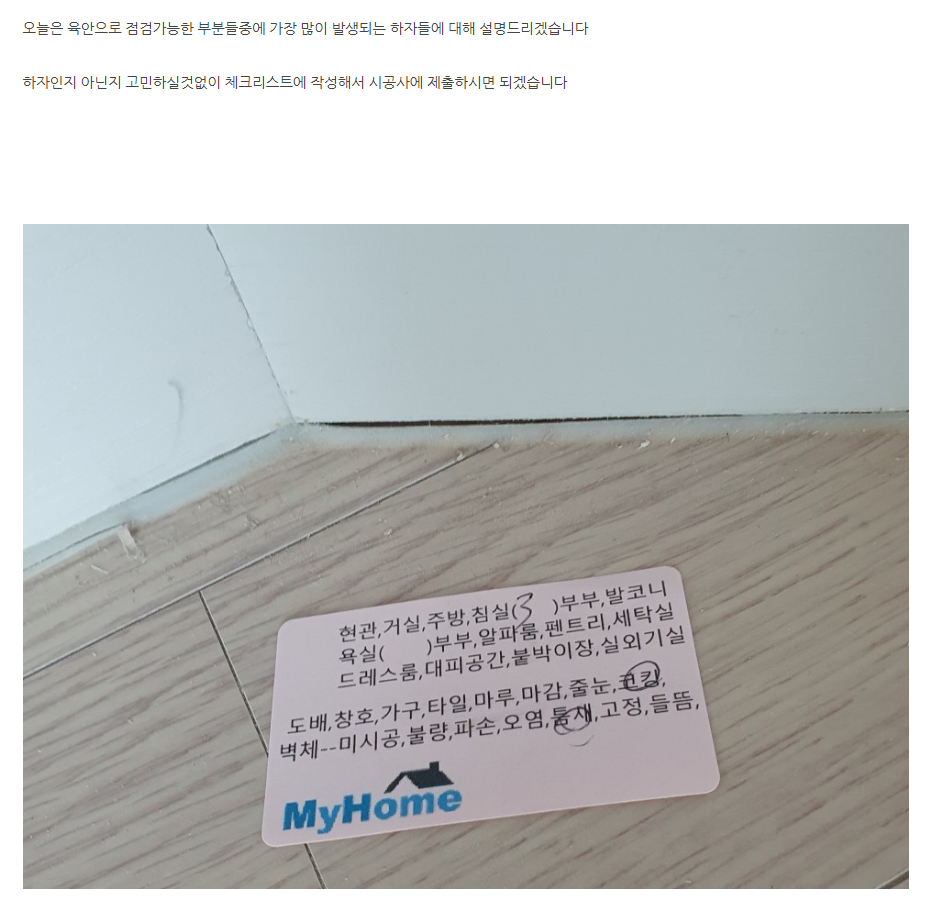 Category: 사전점검By 마이홈2021년 7월 20일 Share this post Share on FacebookShare on Facebook TweetShare on Twitter Post navigationPreviousPrevious post:사전점검은 꼼꼼하고 확실하게 하셔야 합니다NextNext post:연식이 있는 기존 주택 하자점검 진행