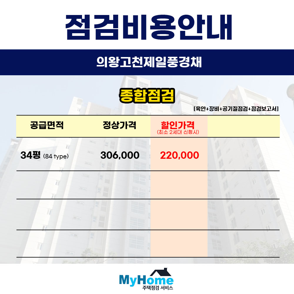 의왕고천제일풍경채 신축 아파트의 사전점검 대행 비용은 입주 카페 내의 등록된 회사는 물론, 검색되는 어떤 곳들보다도 저렴하도록 가격을 책정하였습니다
