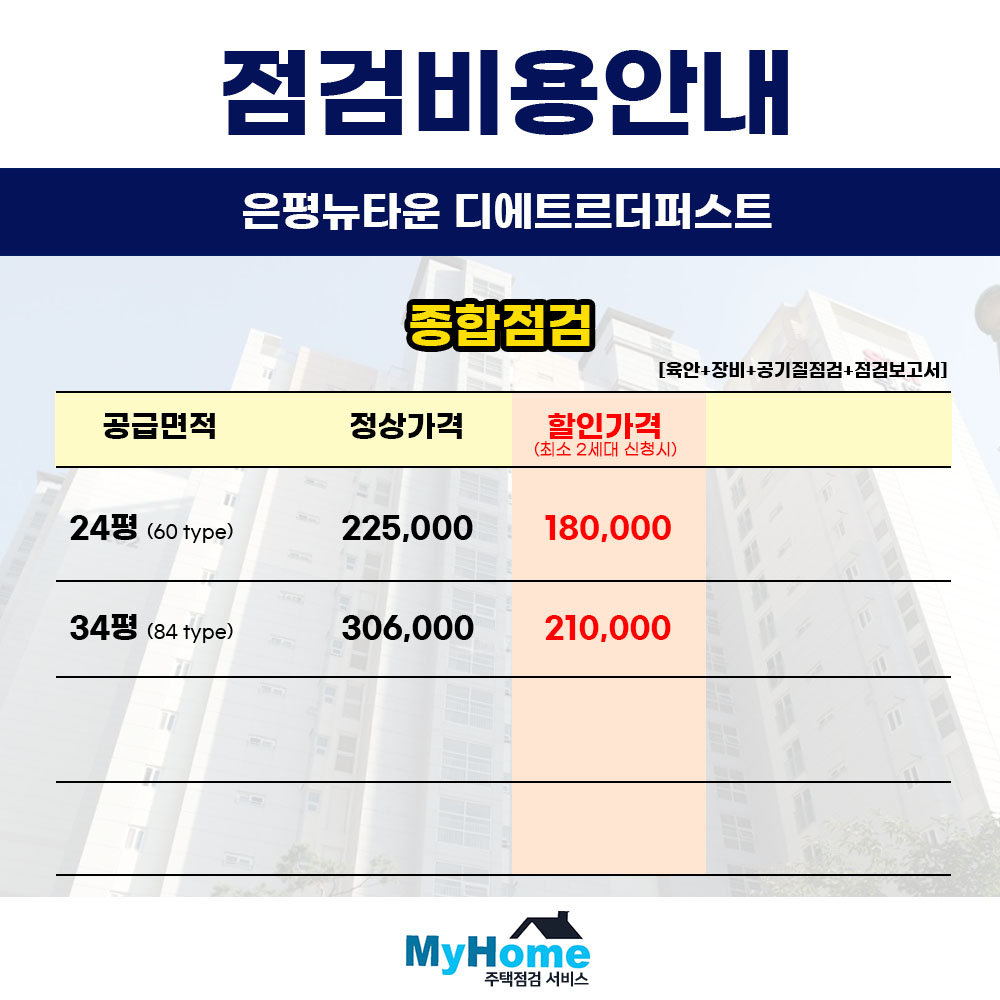 현재 입주 카페나 단체 대화방에 간단한 홍보 글 작성부터 같이 점검할 세대를 모집해 주신 입주민분께는 최대 비용 무료의 혜택으로 보답해 드리고 있으니 좋은 기회 되시길 바랍니다