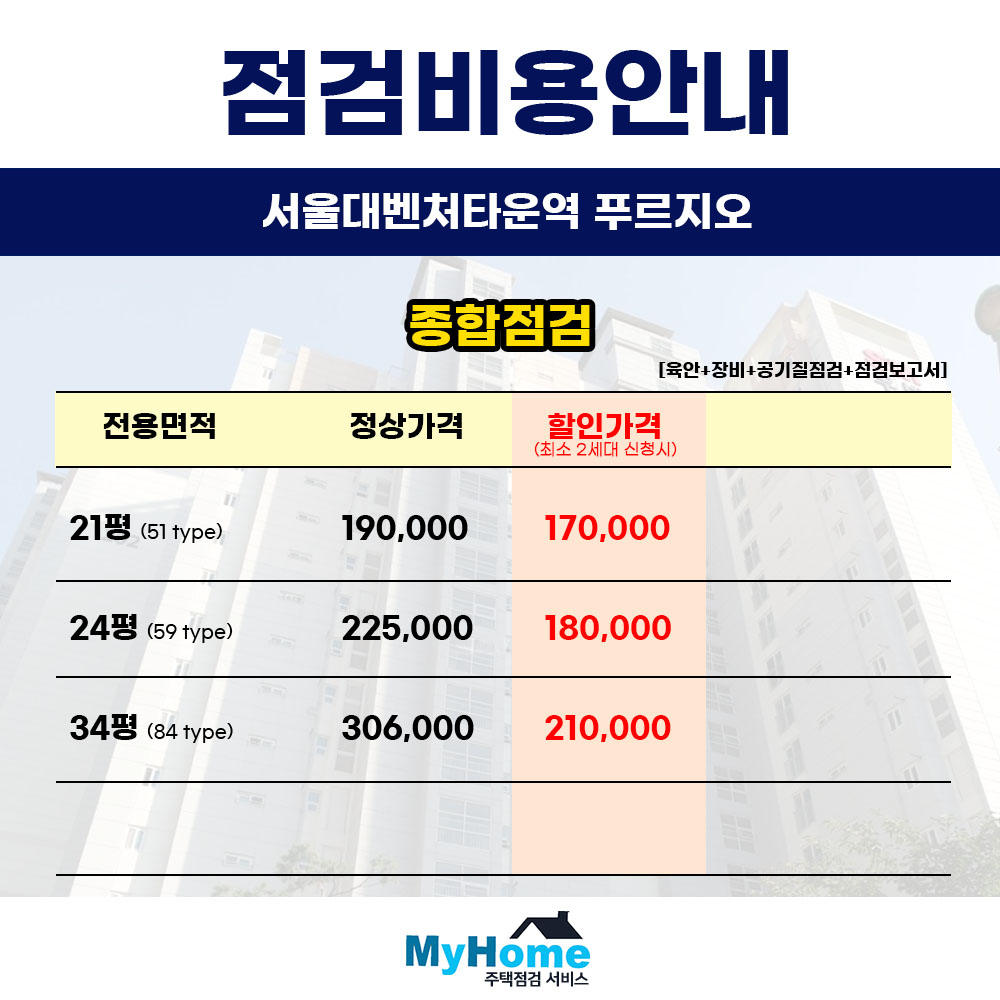 오늘은 많은 문의주시는 서울대벤처타운역 푸르지오의 사전점검 대행 업체와 비용에 대해 말씀드리겠습니다