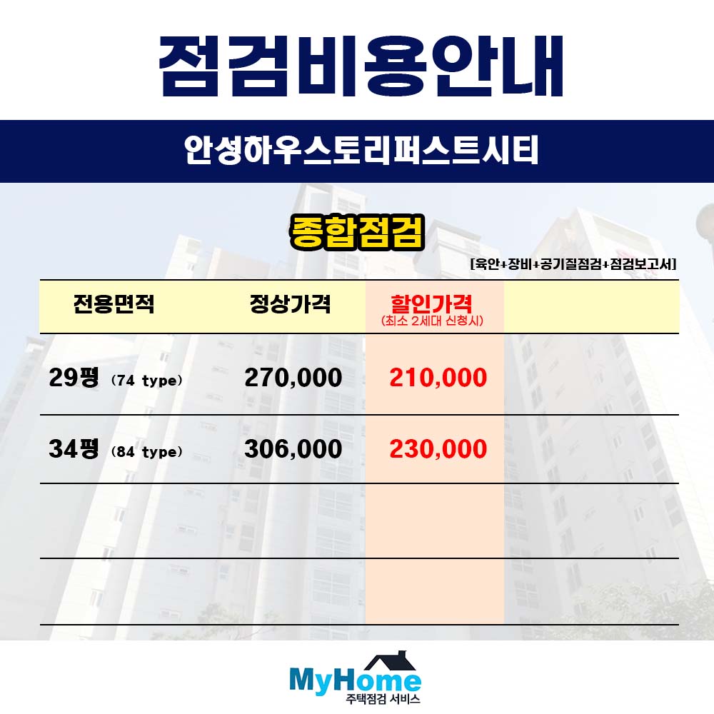 안성하우스토리퍼스트시티의 사전점검 대행 비용은 입주 카페 내의 등록된 회사는 물론, 검색되는 어떤 곳들보다도 저렴하도록 가격을 책정하였습니다