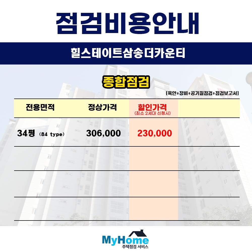 힐스테이트삼송더카운티의 사전점검 대행 비용은 입주 카페 내의 등록된 회사는 물론, 검색되는 어떤 곳들보다도 저렴하도록 가격을 책정하였습니다