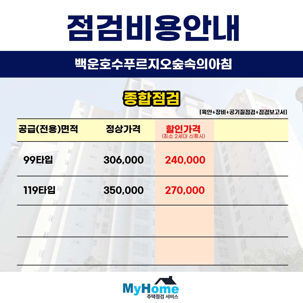 백운호수푸르지오숲속의아침의 사전점검 대행 비용은 입주 카페 내의 등록된 회사는 물론, 검색되는 어떤 곳들보다도 저렴하도록 가격을 책정하였습니다