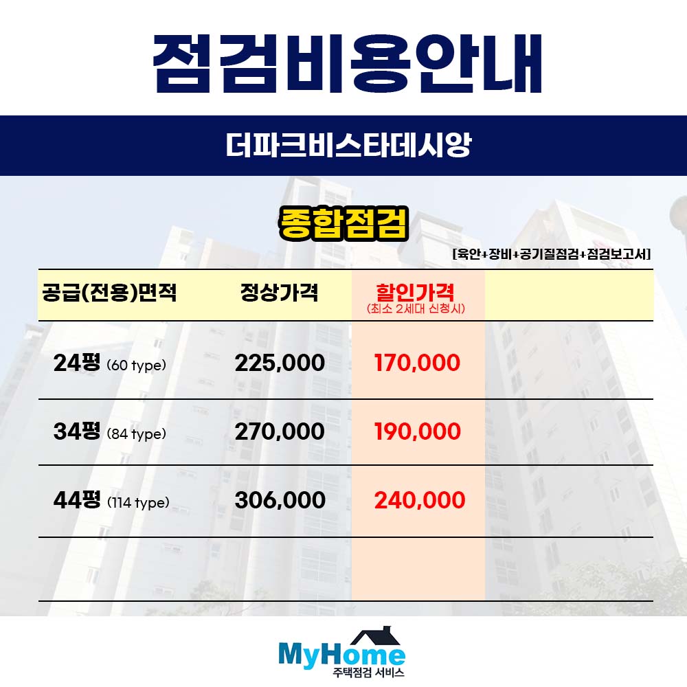 오늘은 많은 문의주시는 더파크비스타데시앙의 사전점검 대행 업체와 비용에 대해 말씀드리겠습니다