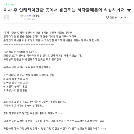 안녕하세요 마이홈 주택점검서비스 입니다 실제로 계약후에 매우 빈번하게 발생되는 사례입니다 집에는 누수, 전기, 소방, 단열, 난방, 환기시설,…