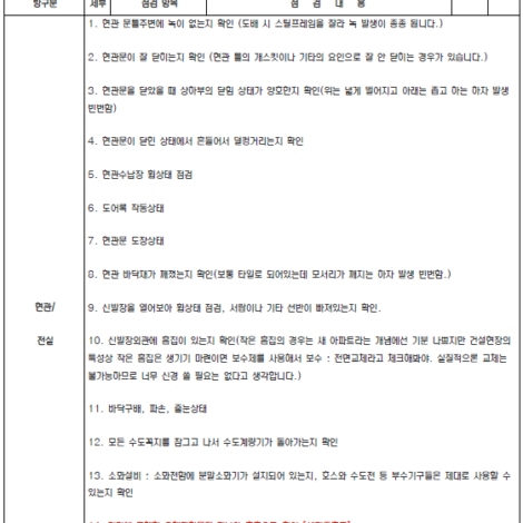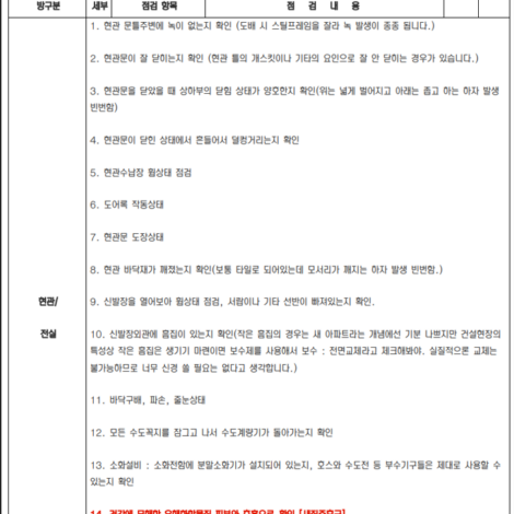 안녕하세요 주택점검 전문 서비스 마이홈입니다 요즘 저희에게 사전점검문의가 많아 보다 많은 분들께 도움을 드릴수있을까해서 사전점검체크리스트를 공유해드립니다 실제 사전점검업체에서 사용하는 체크리스트이며…