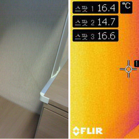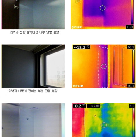 안녕하세요 마이홈 주택점검 서비스입니다(www.myhome.ne.kr) 위의 사진들은 눈으로는 확인할 수 없는 단열시공이 불량한 부분들을 열화상카메라를 통해 촬영한 사진들입니다 단열시공이 불량한 부위는 결로가 잘…