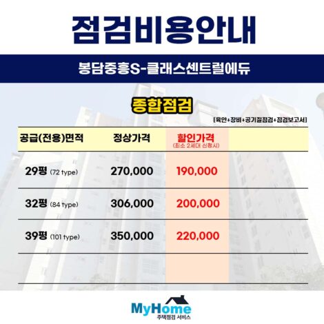 안녕하세요 마이홈주택점검서비스입니다 오늘은 많은 문의주시는 백운호수푸르지오숲속의아침의 사전점검 대행 업체와 비용에 대해 말씀드리겠습니다 현재 입주 카페나 단체…