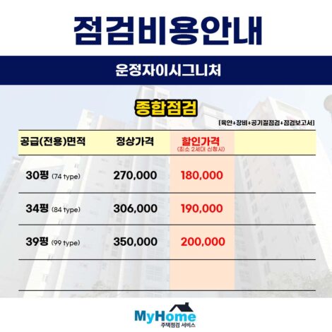 안녕하세요 마이홈주택점검서비스입니다 오늘은 많은 문의주시는 파주운정신도시우미린파크힐스 사전점검 대행 업체와 비용에 대해 말씀드리겠습니다 현재 입주 카페나 단체…