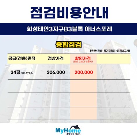 안녕하세요 마이홈주택점검서비스입니다 오늘은 많은 문의주시는 안성라포르테공도 신축 아파트의 사전점검 대행 업체와 비용에 대해 말씀드리겠습니다 현재 입주…